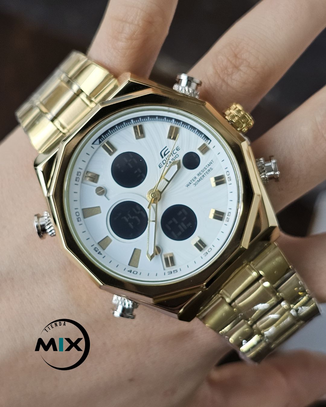 Reloj Gama Alta Con Múltiples Funciones: Hora análoga ,Calendario ,Cronos decorativos, Pulso acerado ,Resistente a salpicaduras y lavado de manos .