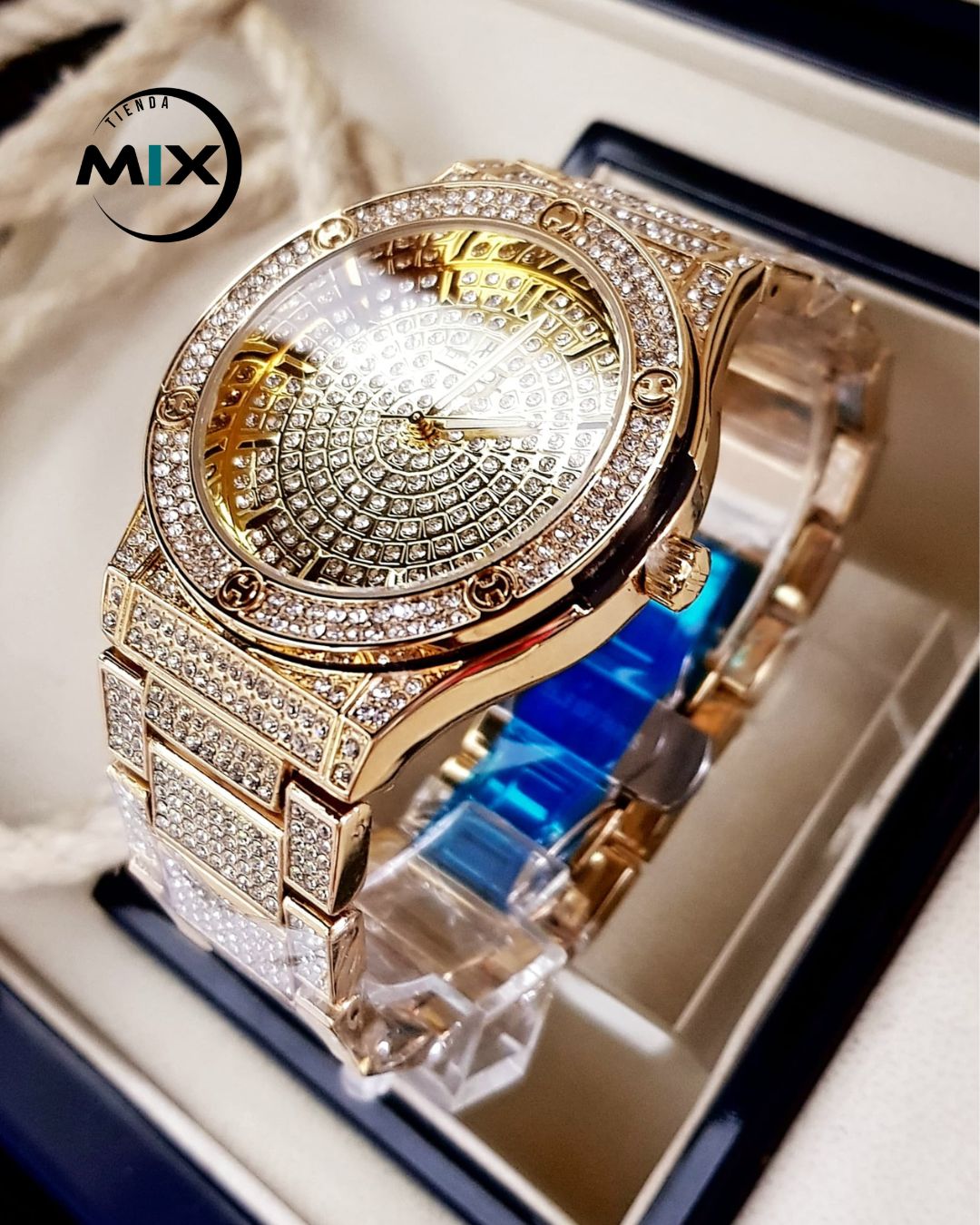 Reloj Gama Alta Con Múltiples Funciones: 💎Hermoso reloj cubierto de brillantes,🔱Totalmente maciso,👑Corona reforzada,🗓️Calendario lupado,⚜️Cierre frances,⌚Pulso con arabescos,✨100% Funcional.
